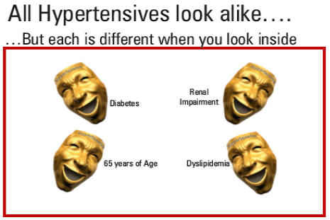 There are many co morbid conditions associated with Hypertension like Diabetes, Renal Impairment, Dyslipidaemia, elderly patients.